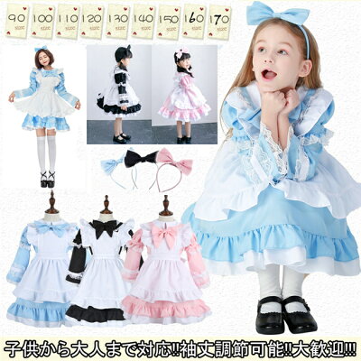 4点セット ハロウィン 仮装 女の子 レディース 子供用 衣装 アリス 風 大人用 こども用 キッズ コスチュームドレス アリスエプロン付セット クリスマス 仮装 WJ.スタジオ
